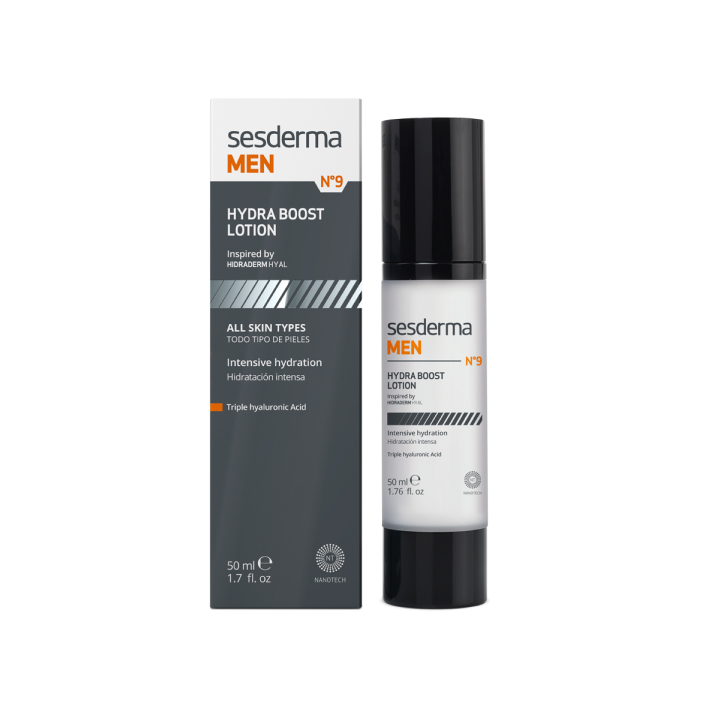 SESDERMA MEN Hydra boost lotion - Мужской увлажняющий лосьон с тремя видами гиалуроновой кислоты от Sesderma, 50 мл активирует интенсивное и глубокое насыщение влагой. Сглаживает складки, инициирует выработку коллагена и эластина. Лосьон Sesderma MEN Hydra boost lotion обладает сверхлёгкой формулой и высокой совместимостью. Прекрасно подходит для всех возрастов и видов кожи, включая самую деликатную. SESDERMA MEN Hydra boost lotion - Мужской увлажняющий лосьон с тремя видами гиалуроновой кислоты от Sesderma, 50 мл создан на базе технологии NANOTECH. Её особенность - в активных веществах, заключённых в нанолипосомы, - миниатюрные липидные оболочки, помогающие ингредиентам оперативно достигать глубоких слоёв кожи, в итоге повышая воздействие лосьона Sesderma MEN Hydra boost lotion.