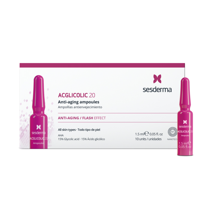 Sesderma ACGLICOLIC 20 Средство в ампулах увлажняющее антивозрастное с гликолевой кислотой для ухода за кожей лица, 10 шт по 1,5 мл