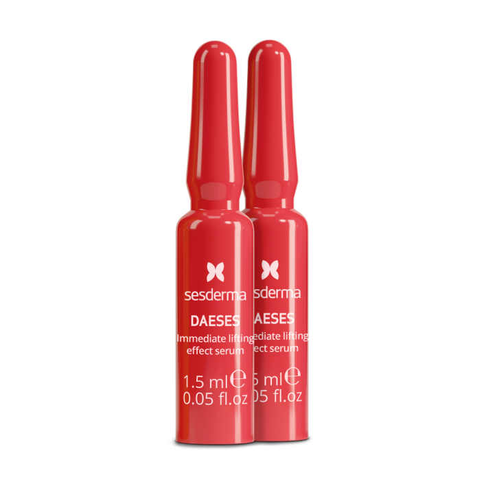 Сесдерма DAESES SERUM LIFTING EFFECT - ревитализирующая сыворотка с instant лифтинг-эффектом на дерме лица, 10 штук по 1,5 мл на базе ДМАЭ (диметиламиноэтанола) в свободной и липосомальной формировках натуральных питательных элементов из морепродуктов и молочной кислоты. Она обеспечивает немедленное омоложение и стягивание кожных тканей, глубоко насыщает влагой и активирует синтез натурального коллагена, что придает очертаниям лица более выраженную форму. Средство рекомендовано как интенсивная процедура для эпидермиса с крайне низким тургором.
