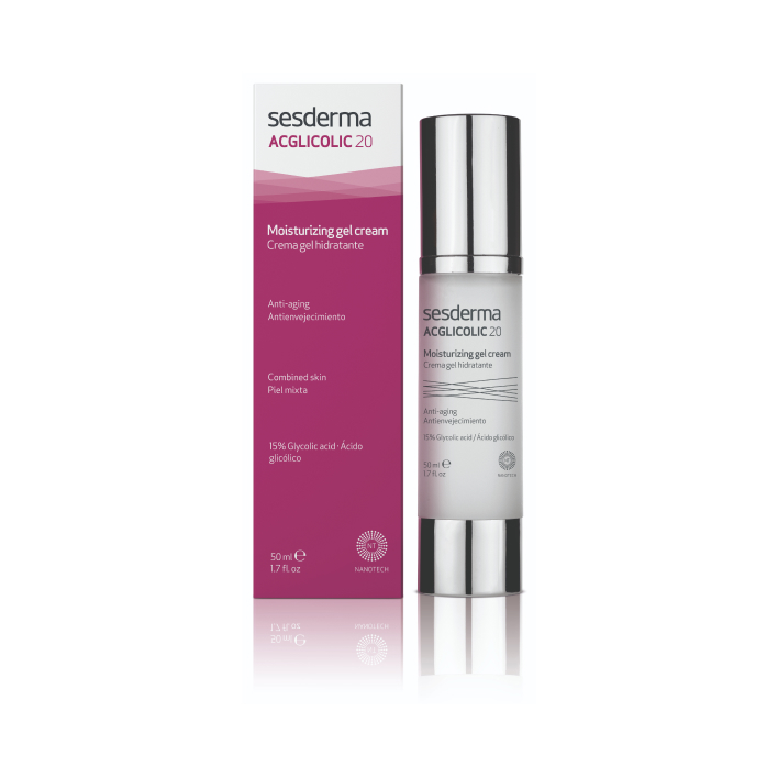 Sesderma ACGLICOLIC 20 Moisturizing gel cream с витаминами С и Е, алоэ вера и гликолевой кислотой способствует ежедневному обновлению кожи, улучшает текстуру и упругость лица. Продукт можно использовать как подготовку перед бритьём или эпиляцией.
