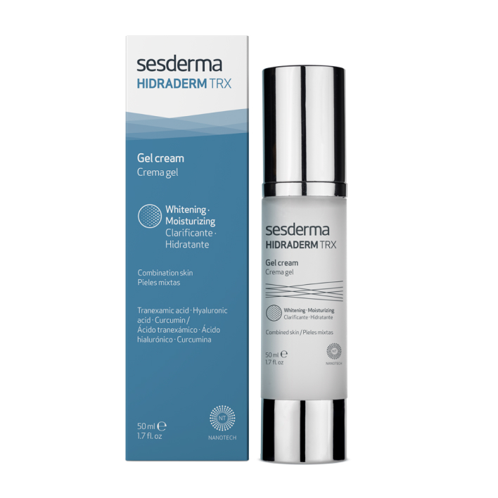 Топовый крем-гель для смешанной, зрелой и нормальной кожи Sesderma HIDRADERM TRX Gel Cream - питательный крем-гель для лица с куркумином, транексамовой и гиалуроновой кислотами, объем 50 мл превосходно справляется с проблемами вроде пигментных пятен, эритемы, раздражений. Средство с гиалуронатом сглаживает цвет лица, глубоко насыщает жидкостью. Крем-гель создан посредством нанотехнологии. Ее исключительность в липосомах субмикронного масштаба с активными ингредиентами - микро-липидных капсулах, ускоряющих доставку компонентов вглубь эпидермиса, тем самым повышая эффективность гиалуронового крема Sesderma HIDRADERM TRX Gel Cream - питательный крем-гель для лица с куркумином, транексамовой и гиалуроновой кислотами, объем 50 мл.