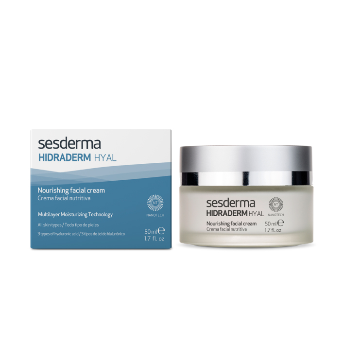 Sesderma HIDRADERM HYAL Крем для лица - питательный крем для кожи лица с тремя видами гиалуроновой кислоты, 50 мл, инкапсулированные в липосомы, активно насыщает кожу влагой, повышает её упругость и эластичность. Обеспечивает интенсивное увлажнение и питание сразу после нанесения. Действие формулы усилено коллагеном, керамидами и натуральными маслами. Подходит для всех типов кожи, включая проблемную, сухую и чувствительную. Sesderma HIDRADERM HYAL Крем для лица - питательный крем для кожи лица с тремя видами гиалуроновой кислоты, 50 мл создан с применением технологии NANOTECH. Её уникальность в том, что активные вещества помещены в липосомы наноразмера - микролипидные капсулы, помогающие компонентам глубоко проникать в кожу, тем самым усиливая эффект от Sesderma HIDRADERM HYAL Крем для лица - питательный крем для кожи лица с тремя видами гиалуроновой кислоты, 50 мл.
