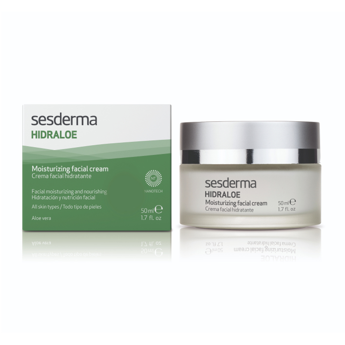 Sesderma HIDRALOE Moisturizing facial cream – Увлажняющий крем для кожи лица с алоэ-вера и маслом карите, 50 мл благодаря своему насыщенному составу (алоэ вера, масло Ши, экстракт центеллы азиатской) насыщает влагой кожу лица и шеи, питает ее, предотвращает появление и сокращает существующие морщины, препятствует дряблости кожи, устраняет воспаления и успокаивает пересохшую, раздраженную дерму. Средство разработано с применением технологии NANOTECH. Его уникальность – в использовании активных ингредиентов, помещенных в липосомы наноразмера, – крошечные липидные капсулы, которые позволяют компонентам оперативно проникать в глубокие слои кожи лица и шеи, тем самым усиливая эффективность крема Sesderma HIDRALOE Moisturizing facial cream (лучший крем для лица против морщин Гидралое).