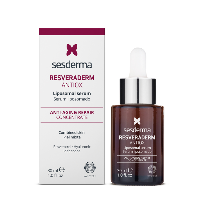Sesderma RESVERADERM ANTIOX Liposomal serum - антиоксидантная липосомальная сыворотка с резвератролом и стволовыми клетками для ухода за кожей лица, 30 мл