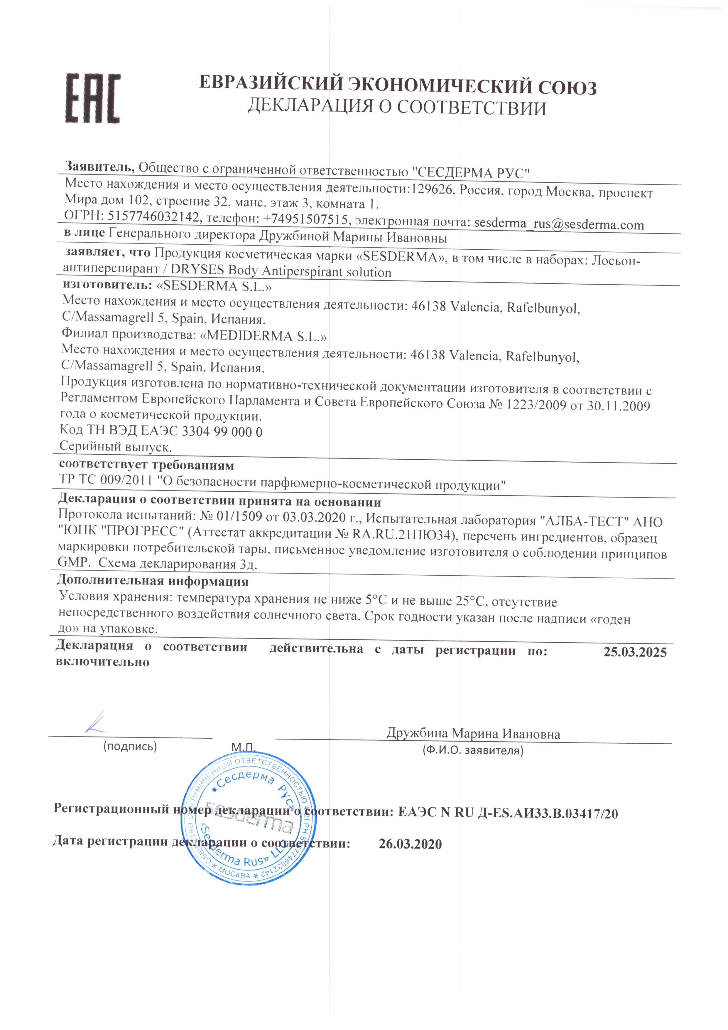 • Изготовлено в Испании (производство Сесдерма в Валенсии)